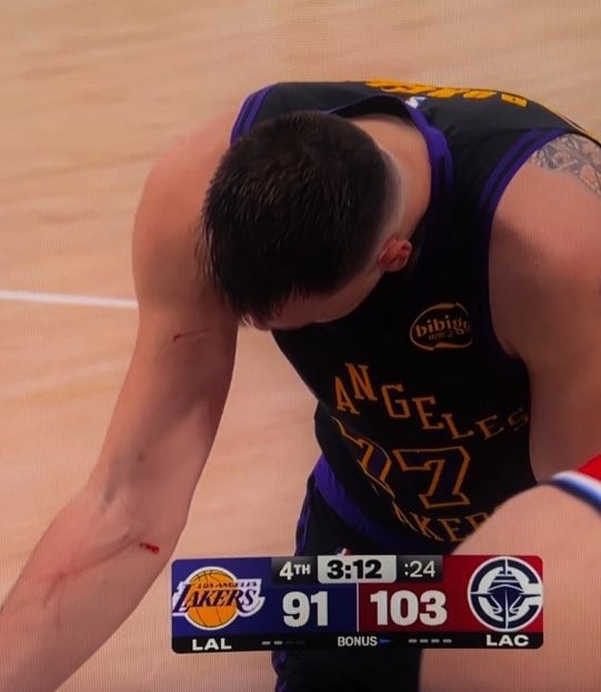 谁抓的~东契奇罚球时看向手臂 好几道伤口&血迹斑斑